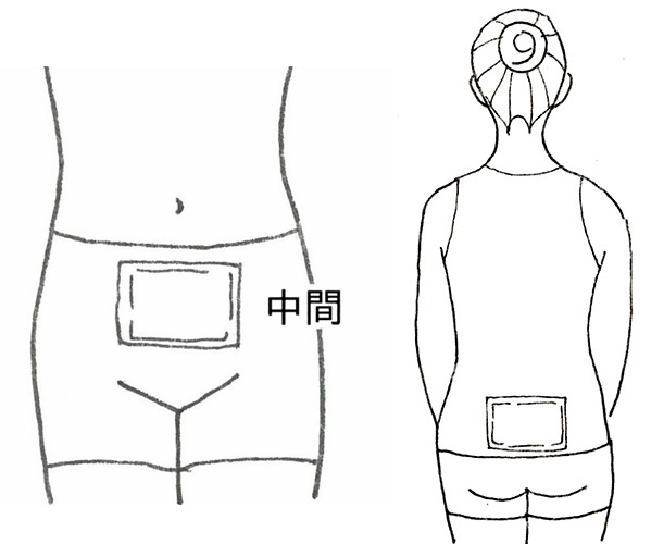 | ② 仙骨付近とお腹にカイロを貼る。ぎっくり腰の予防だけでなく、身体全体を温めてくれる。(生理痛のある方は、生理中はもちろん、寒い時期は常時貼るのもオススメです) |