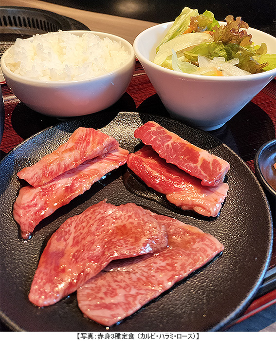 “和”のランチタイム、一番人気の「ローストビーフ丼」や牛一頭からあまりとれない希少部位のサガリが、150gも味わえる「お肉丼」など、“和”魅惑の丼メニューは見逃せない一品たちですが、オープンフロアを区切った居心地の良い個室空間の中で、自由気ままにお肉を焼いていただけるカルビをはじめとした焼肉ランチ類は、仕事の合間のお昼ご飯でも、身も心も整えられる贅沢なひとときが過ごせます。