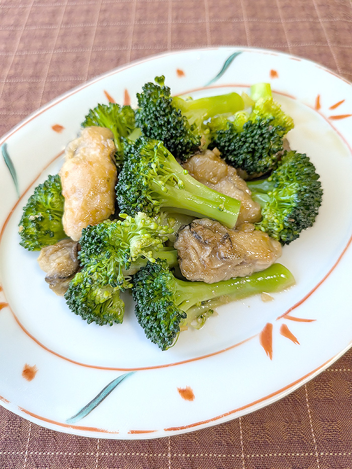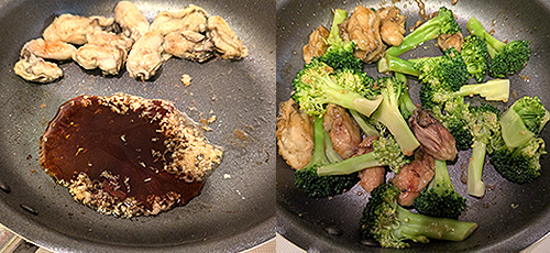 ![]() ■ 材料(2人分) 1人分 181kcal ブロッコリー…150g サラダ油…小さじ1/2 水…大さじ3 かき…150g 薄力粉…大さじ1 ごま油…大さじ1 しょうが…1かけ にんにく…1かけ a オイスターソース…小さじ2 しょうゆ…小さじ2 みりん…小さじ2 水…大さじ2
