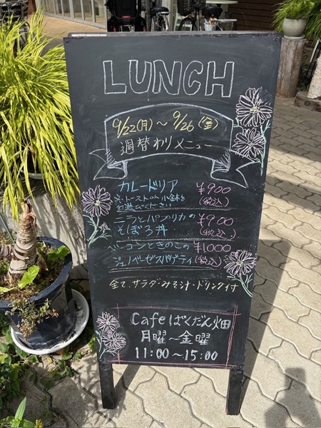 配布しながらのランチはいつもどこに行こうか迷いますが、今回は、なかなか行けなかった配布先にもなって下さっている「cafe ばくだん畑」さんへ