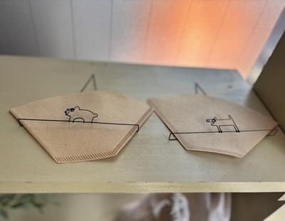 その他にも、福岡の作家さんによるワイヤーアート“のコーヒーフィルター入れ”や美濃焼と天然木で作られた特別なドリッパーなども販売されていて、コーヒー好きには毎日のコーヒータイムが楽しくなるようなグッズが揃えられています。
