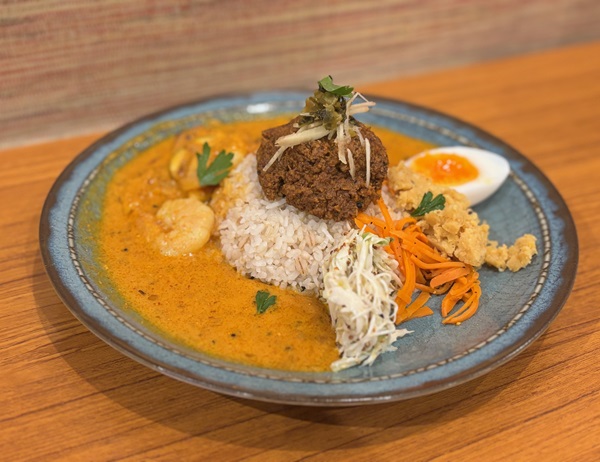 この2種盛りが人気なのも納得。キーマは辛すぎず、濃厚な旨みがしっかり。プリプリのエビが入ったカレーは、さらりとした口当たりながらも、クリームのコクとスパイスのバランスが絶妙でした。食感も味わいも異なる2種類のカレーの組み合わせに、ご飯を小盛りにしたことを思わず後悔するほどの満足感でした。