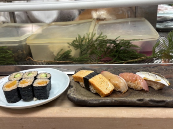 ランチは、握り(1人前)¥1,320(にぎり7貫・巻物1本)大盛( 1人前)¥1,760(にぎり10貫・巻物1本)で、握り(1人前)をお願いしました。(※2025年10月1日現在のお値段です)