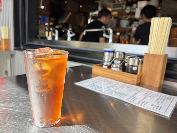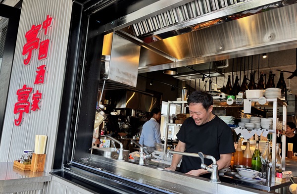 さすがの人気店、店内のカウンター席は満席でテラス席に着席しました。こちらの席、店主の中華鍋を振る姿が目の前で見られます。
