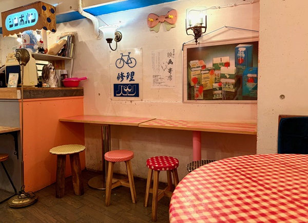 ポップでかわいらしい店内は、どこを切り取っても絵になる空間。アーティストが手がけたテーブルや照明もとても素敵です。 焼きたてパンの香りに包まれながら、店内をのんびり眺めていると、かわいらしいトレイに乗った淹れたてのドリップコーヒーとパンが運ばれてきました。