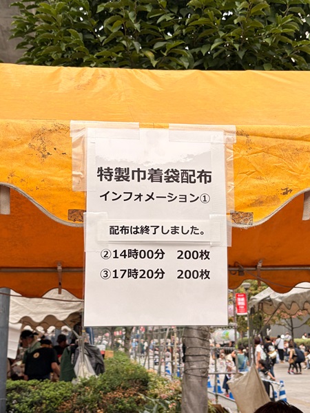 特製巾着袋配布を待つ方々の列でした。巾着の受け取りチャンスはまだあります!