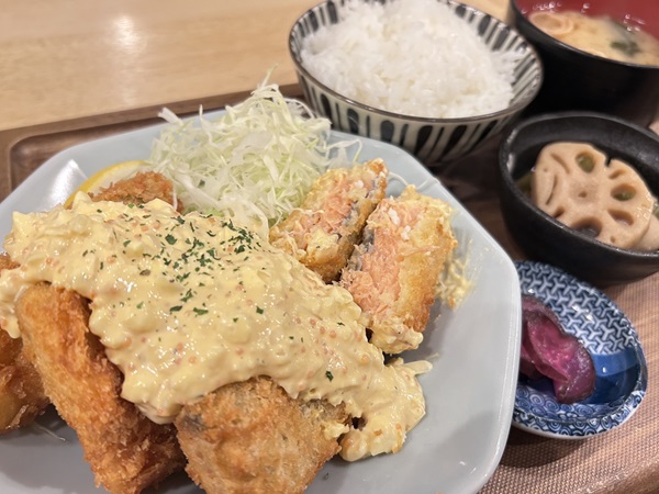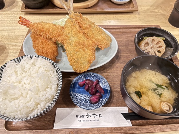 アジフライ、エビフライ、クリームコロッケと、煮物がついています。