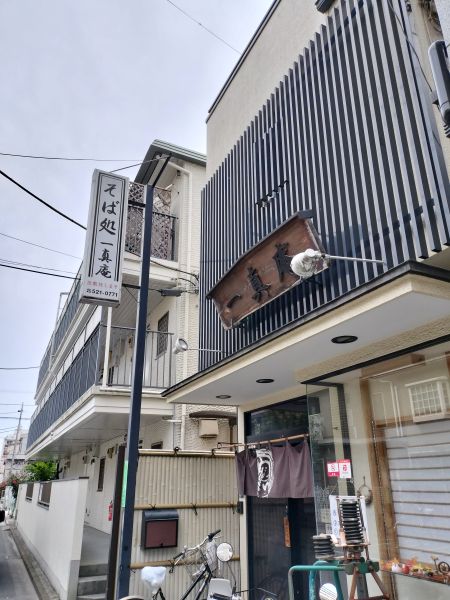 と、立川のグルメ通から紹介されて伺ったのは、多摩都市モノレール「立川南駅」から南東方向。「立川南通り」の一本南側を、東西をつなぐ一方通行の道沿いで、「都立立川高等学校」のちょうど北側辺りにある和食店・「そば処 一真案」です。