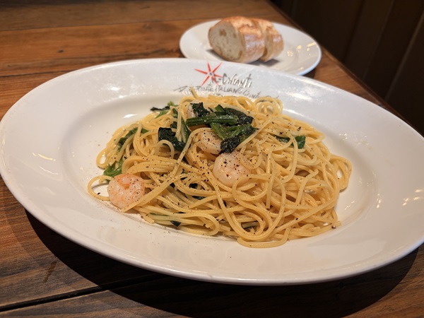 バター醤油のコクのあるパスタに小海老が良いアクセントになっています。