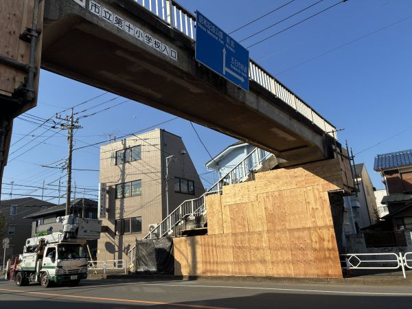 」に唯一かかる歩道橋が、現在経年劣化による補修工事の真っ最中です。