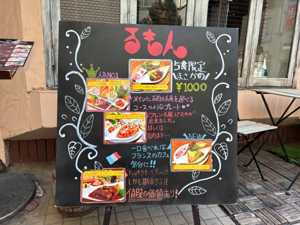 ランチメニューには、フレンチパスタプレート(¥1,650)やクロックムッシュプレート(¥1,600)など、ひとくち食べれば、まるでフランスのカフェ気分を味わえるような品々から、メインにお肉かお魚を選べるフレンチのコース料理のようなフレンチ御膳(¥2,500)。るもん特製ビーフシチュー(¥2,900)といった本場の味わいを、立川に居ながら堪能できる逸品などの、ランチは厳選メニューが選べます。