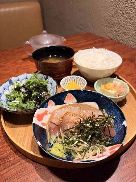 鮮魚のごまだれ刺身定食 お出汁添え