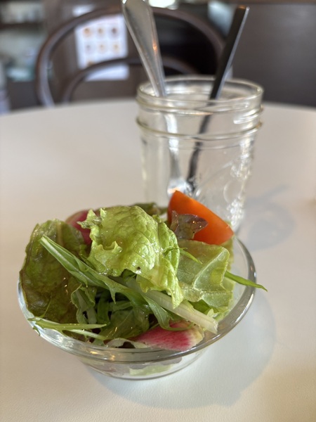 季節のピザトーストセット(サラダ・ドリンク付)1,200円と、自家製ドーナツも食べたい…と思い、おすすめをお伺いして、その中から塩キャラメルドーナツ390円を選びました。