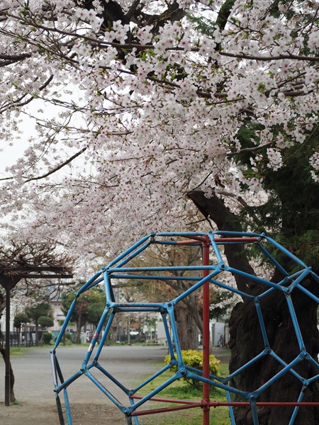 最近あまり見かけない、丸型のうんていや砂場のある公園「