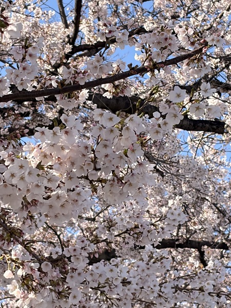 満開の桜。風が吹くたびに花びらが舞い散る様子も、また格別の美しさですね。