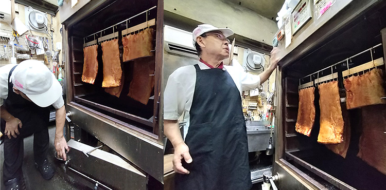 取材当日は、ちょうどベーコンをスモークし終わったところ。スモークハウス(燻製器)をのぞかせていただきました。